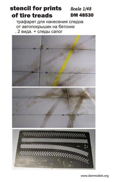 Danmodel DM 48530 Трафарет для нанесення слідів від автопокришок.2 види шин+сліди чобіт в маштабі 1/48