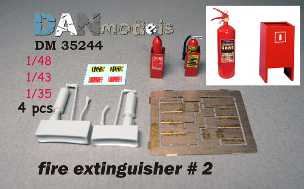 У наборі - 4 шт. вогнегасника в масштабах 1/35, 1/43, 1/48, фототравлення, декаль